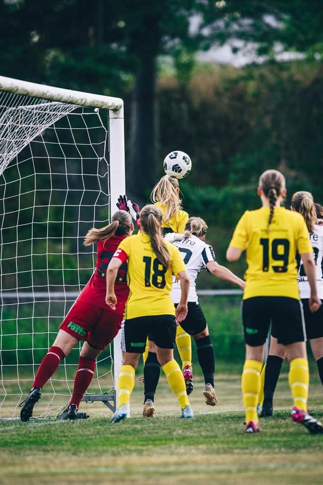 Sista matchen innan sommaruppehållet och första matchen på höstsäsongen spelades hemma på fina Skogsvallen mot tabelltvåan Älta. Matchen slutade 0-0 och vi tar en viktig poäng i bottenstriden mot topplaget. Vi gör det svårt för Älta med ett stabilt försvar och vi sätter bra press framåt och skapar lägen och flera bra avslut utifrån som tyvärr blir resultatlösa. Älta kommer till några lägen men dem fixar Bea i målet och hon får välförtjänt hålla nollan. Hela laget står för en stabil insats och visar en härlig inställning matchen igenom. Vi går nu på sommarvila med en positiv känsla och laddar batterierna för en spännande höstsäsong. Tack till alla er som stöttat och följt oss, vi ses igen i augusti! Foto: Erik Vässmar