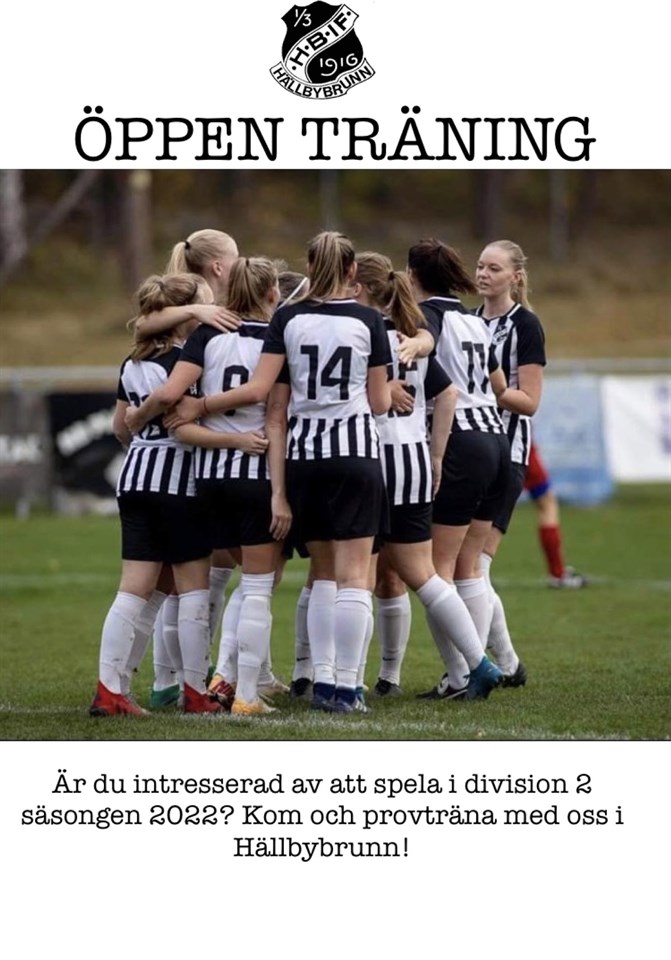 Hällby dam bjuder in till öppna träningar i Tunahallen på måndagar klockan 20-21, med start måndag 8 november. Vi önskar bredda truppen och förbereda oss för spel i division 2 säsongen 2022. Hör gärna av dig till någon av oss ledare, Tony Bird 070-6467913, Johan Jälmestål 070-871 94 42 eller Sara Bylund 070-9993232 om du är intresserad av att komma och provträna med oss! Damlaget 3 nov 2021 0kommentarer